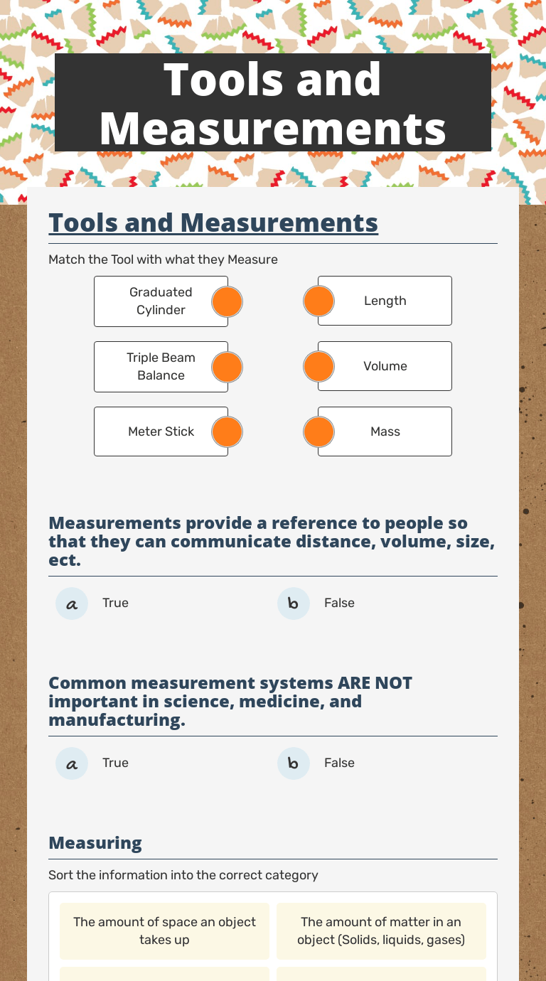 Measurement Tools Matching Worksheet / Units Of Measurement Matching Cards :
